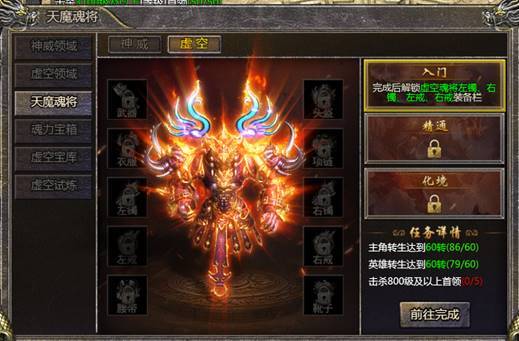 3. 功能说明:击杀虚空领域首领,掉落高星级强力虚空魂将装备,穿戴虚空魂将装备可获得大量属性加成
