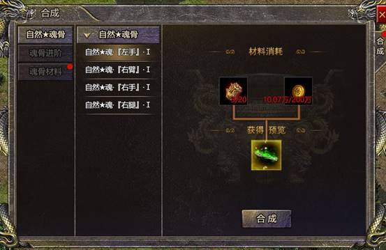 3. 魂骨合成面板调整,整合到天斗大森林的魂骨打造