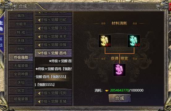 3. 功能说明:第五次合服以后,玩家可以合成SSS级生肖强散,第六次合服以后,玩家可以合成SSSS级生肖强散