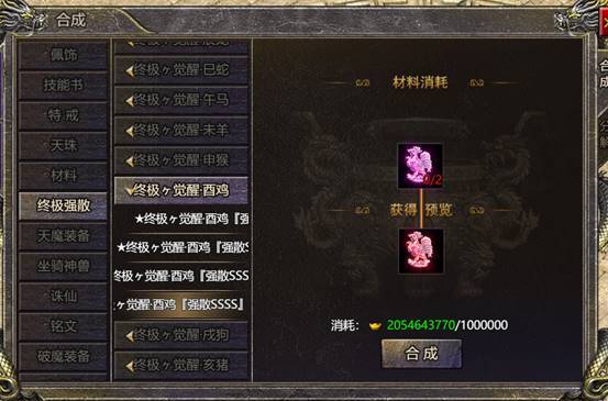 3. 功能说明:第五次合服以后,玩家可以合成SSS级生肖强散,第六次合服以后,玩家可以合成SSSS级生肖强散